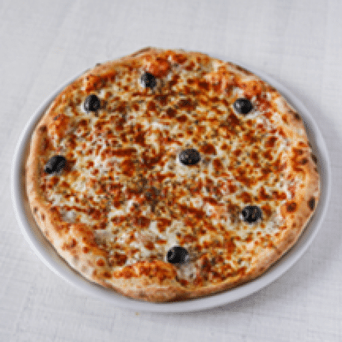 Tomate, mozzarella, thon, poivrons, oignons, olives.